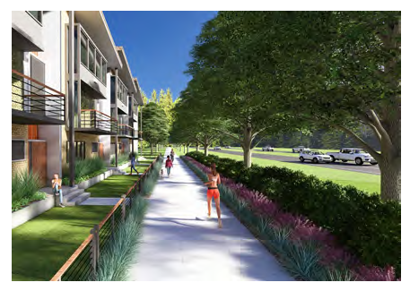 Shared driveways and alley-loaded garages are encouraged to reduce curb cuts and enhance pedestrian streetscapes.