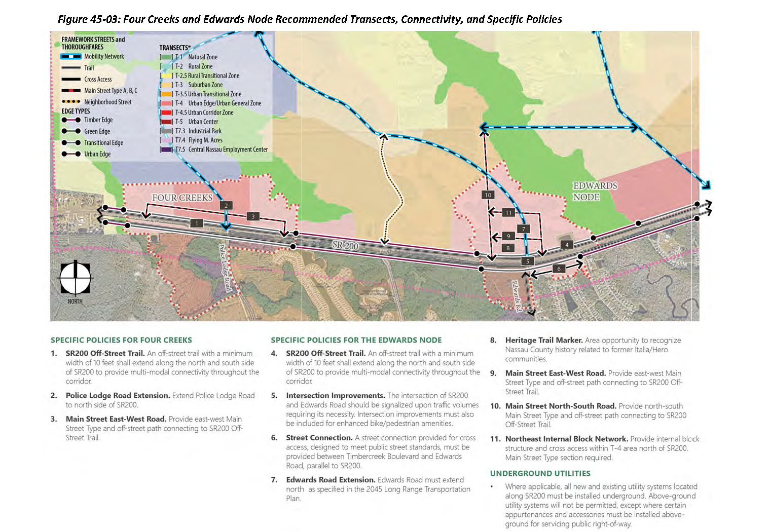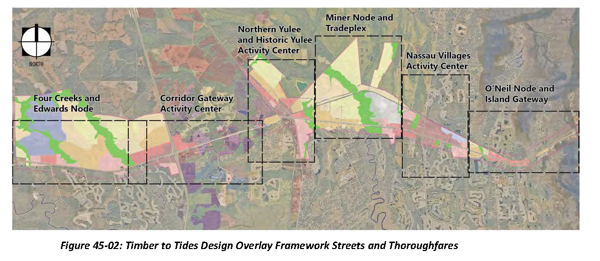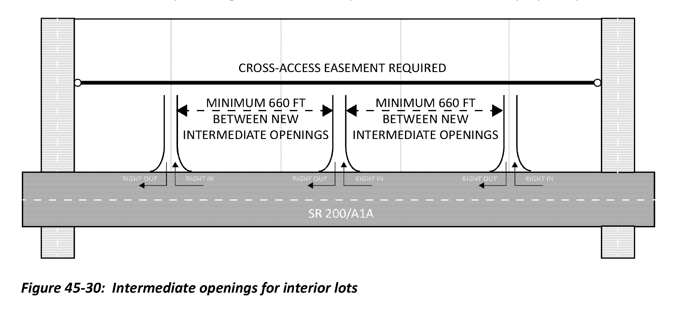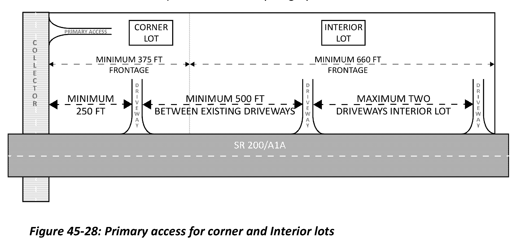 Certain properties located within one thousand (1,000) feet of each side of SR 200/A1A—extending from the west side of the Thomas J. Shave Bridge to Police Lodge Road—are subject to the access management regulations of the Timber to Tides Design Overlay (T2TDO) by geographic inclusion only. These properties: