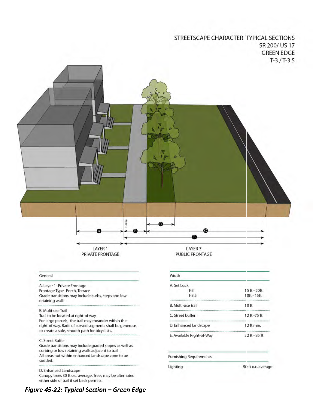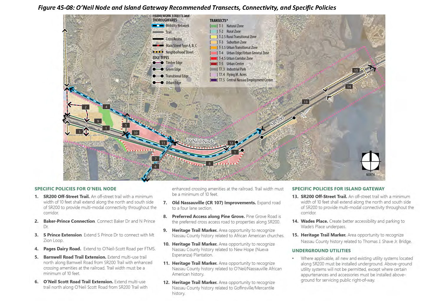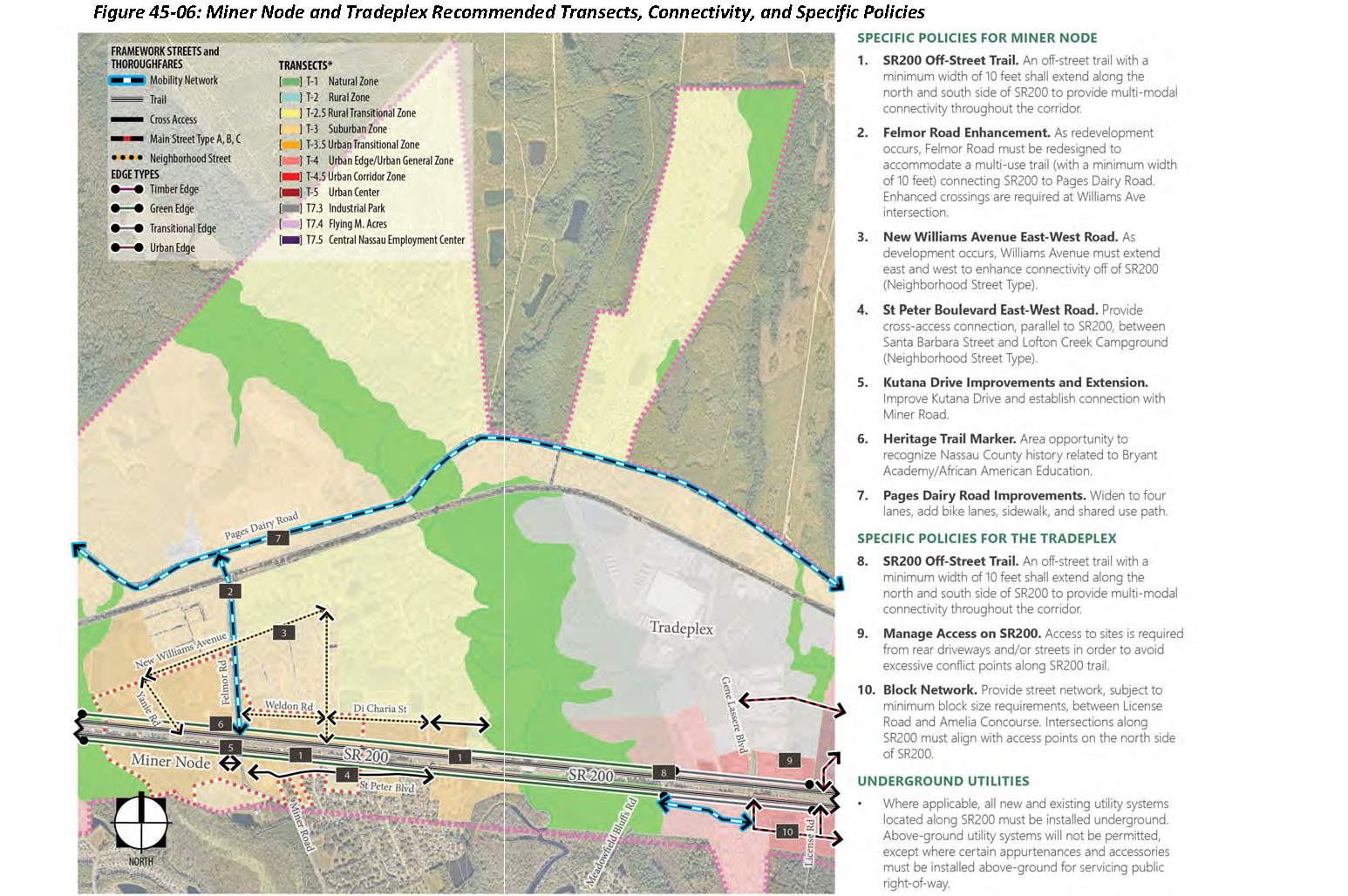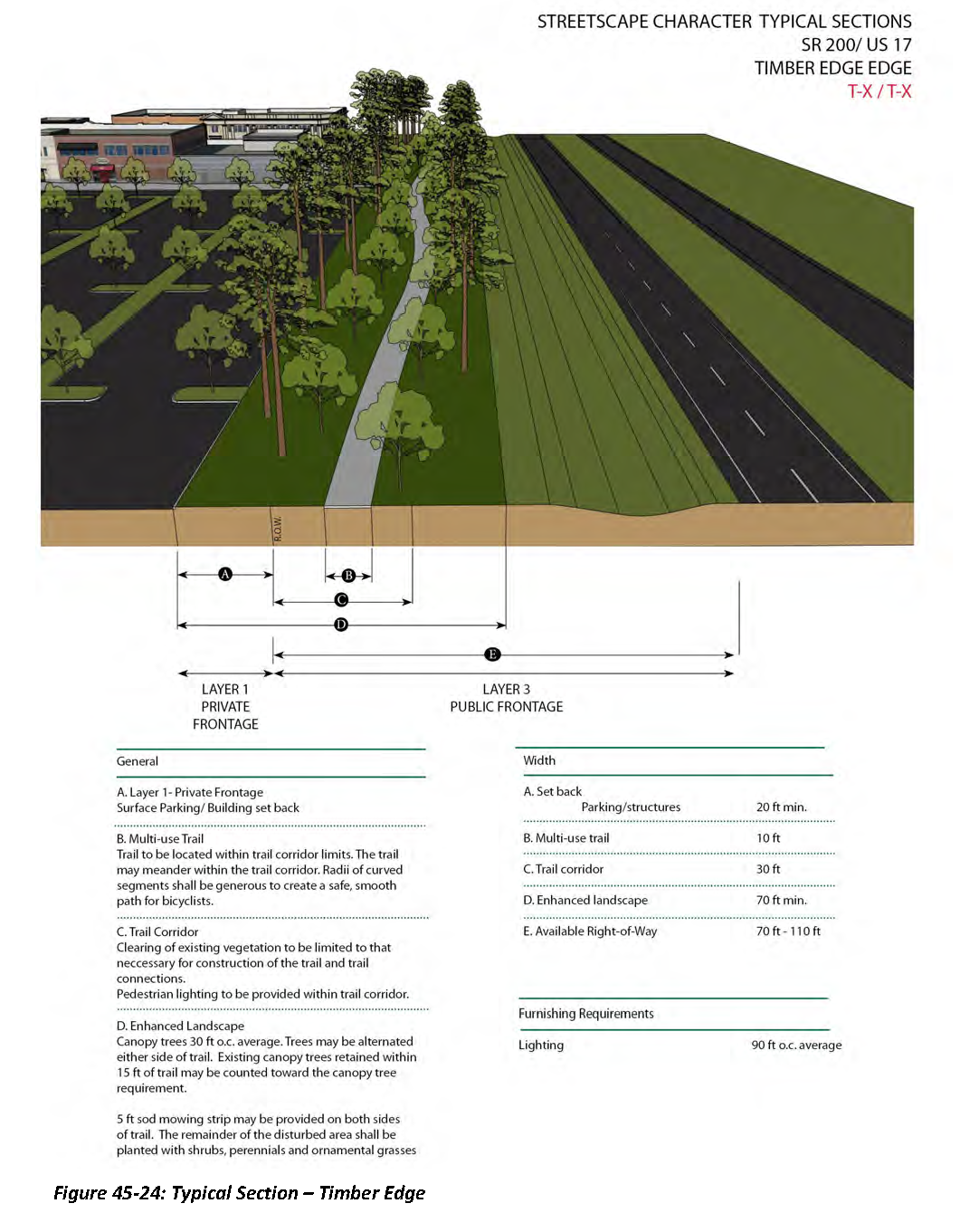 Certain properties located within one thousand (1,000) feet of each side of SR 200/A1A—extending from the west side of the Thomas J. Shave Bridge to Police Lodge Road—are subject to the access management regulations of the Timber to Tides Design Overlay (T2TDO) by geographic inclusion only. These properties: