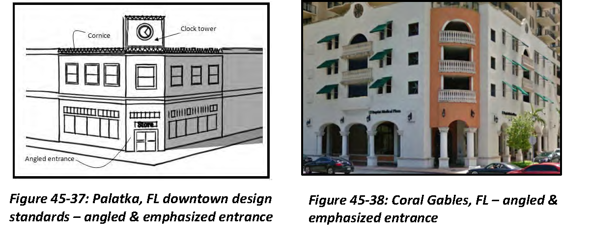 Anchor buildings shall be positioned at the street frontage at the intersection, extending vertically to provide visible presence at the corner.