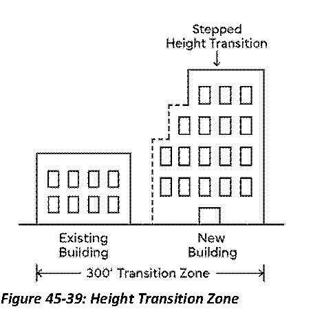 Where three-stories or higher structures abut existing one-story homes, a transitional step-down in height or an increased side setback shall be incorporated to ensure compatibility.
