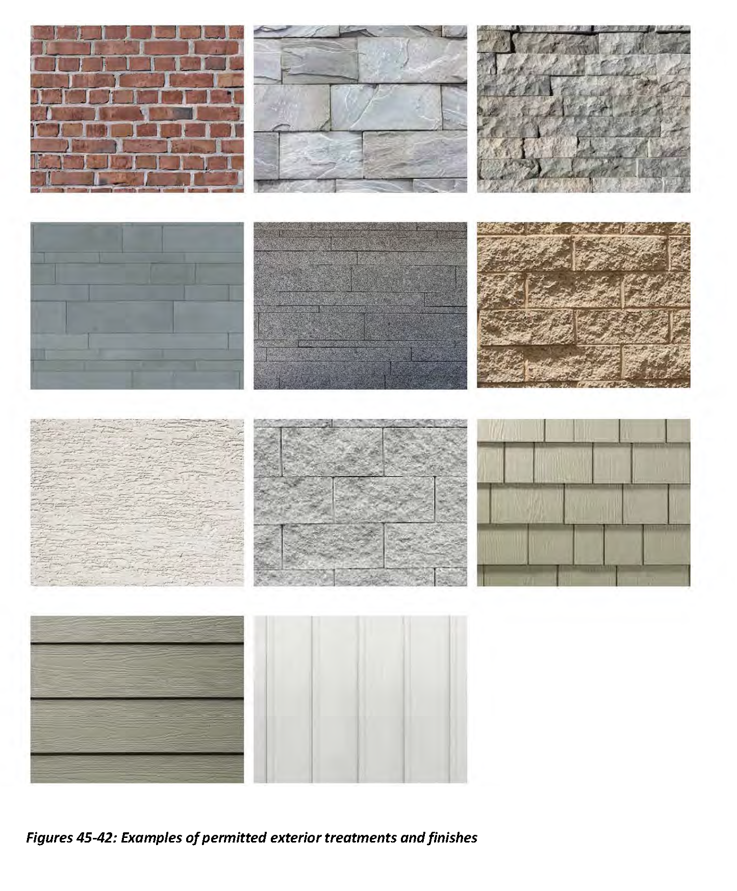 To allow for flexibility in materials for specific architectural styles and recognizing that technologies change over time, the planning director may approve the use of other treatments and finishes not listed or listed as prohibited.