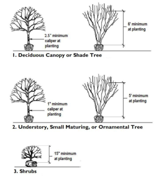 Landscape materials should be hardy and adaptable to local conditions, easily maintained, and drought tolerant. Use of native plants is strongly encouraged.