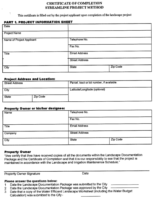 Projects will follow guidelines of the Governor’s Executive Order EO B-29-15, requiring project plans to be designed/approved by a person authorized by the State of California to design a landscape or an irrigation system. These projects require the calculation for the Maximum Applied Water Allowance (MAWA); the development of a hydrozone table to calculate the Estimated Total Water Use (ETWU) does not exceed the Maximum Applied Water Allowance (MAWA). It requires more attention to the design of the irrigation system assuming a wider range of plant factors will be part of each hydrozone.