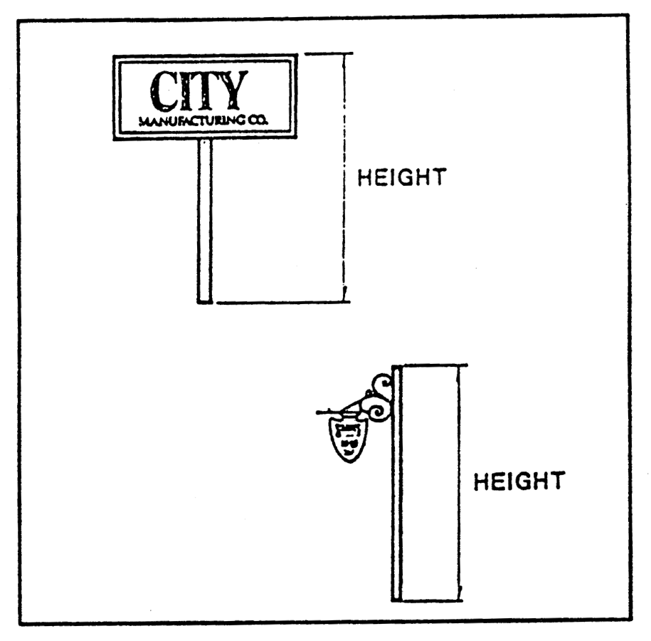 Sign height means the vertical distance from the finished grade at the base of the supporting structure to the top of the sign, or its frame or supporting structure, whichever is higher (see Figure 27-576-4).