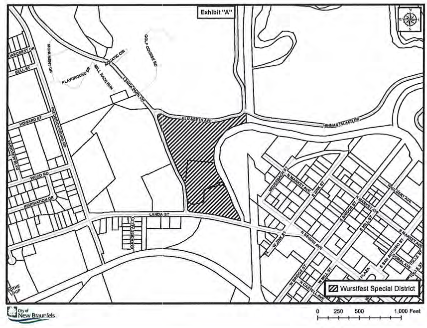 Area included in Wurstfest Special District.