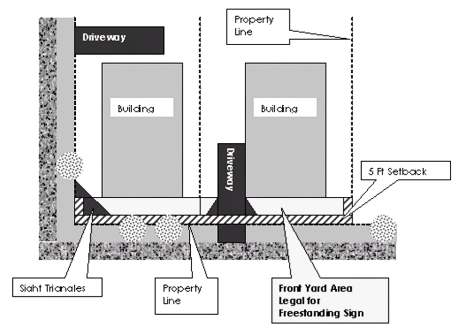 Basic Outline for Location of Freestanding Signs. Additional requirements may apply for specific zones. Check Chapter 17.06 sign regulation table for details.