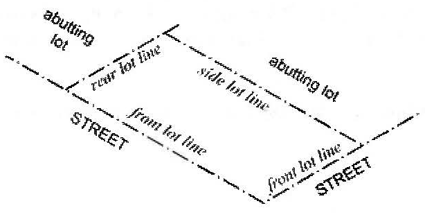 Right-of-Way Line. The line that forms the boundary of a right-of-way, typically corresponding with the front lot line of abutting properties.