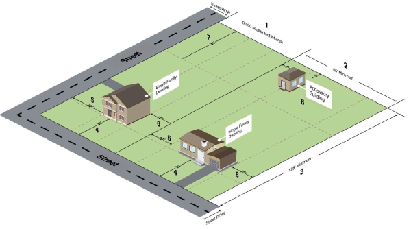 | Single Family Detached Dwelling | Single Family Detached Dwelling Front Corner Lot | Single Family Detached Dwelling Rear Corner Lot | Accessory Structure | Other Uses | |