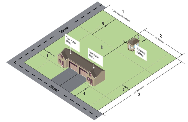 | Single Family Dwelling | Twin Home | Duplex | Accessory Structure | Other Uses | |