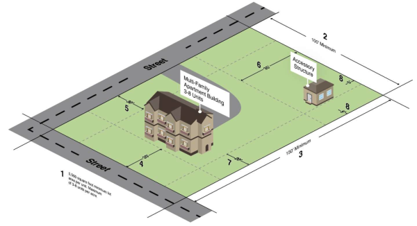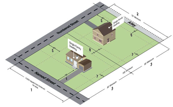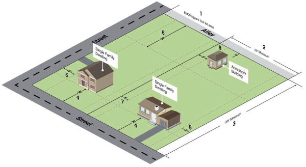 | Minimum Lot Area | 8,250 sq. ft. | 4,000 sq. ft. | 4,000 sq. ft. | 8,250 sq. ft. | – | 20,000 sq. ft. |
