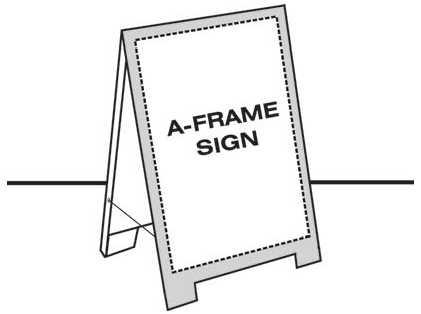 A-frame sign. A portable upright, rigid, self-supporting frame sign in the form of a triangle or letter "A".