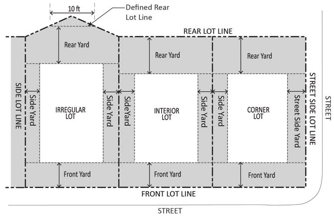 Rear yard. A yard extending across the rear of a lot for its full width between side lot lines, and to a depth specified by this title for the district in which it is located. If a lot has no rear lot line, a line ten feet in length within the lot, parallel to and at the maximum possible distance from the front lot line, will be deemed the rear lot line for the purpose of establishing the minimum rear yard.
