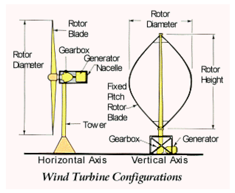 Horizontal axis wind turbine means a wind turbine designed so that the rotor shaft is parallel to the ground and the blades are perpendicular to the ground.