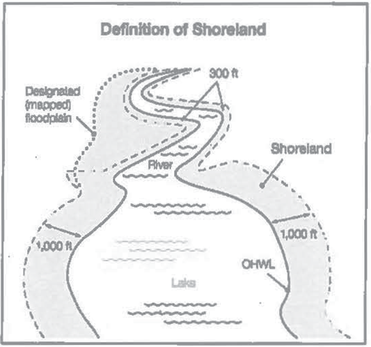 Shoreland: "Shoreland" means land located within the following distances from public waters: