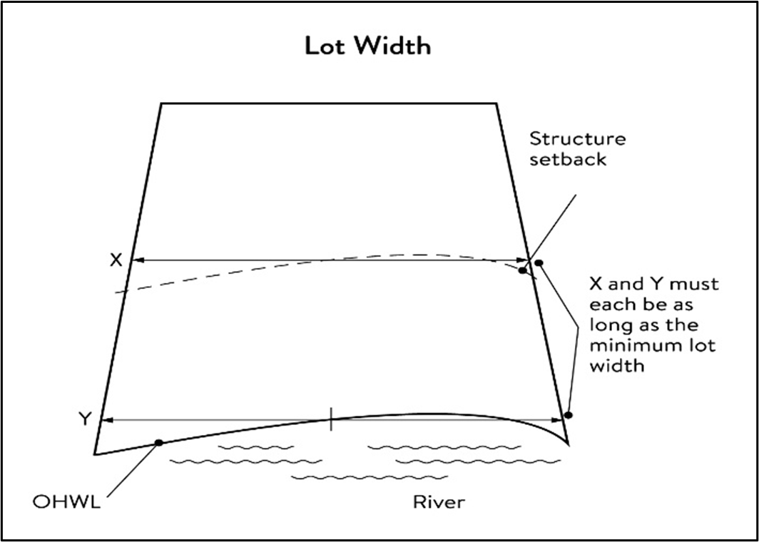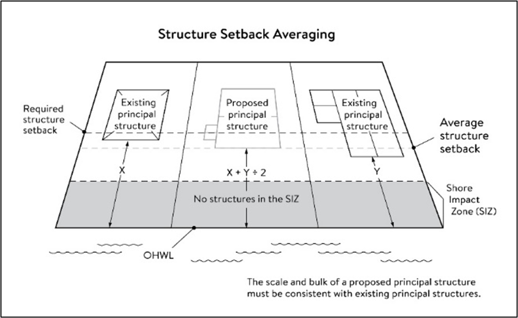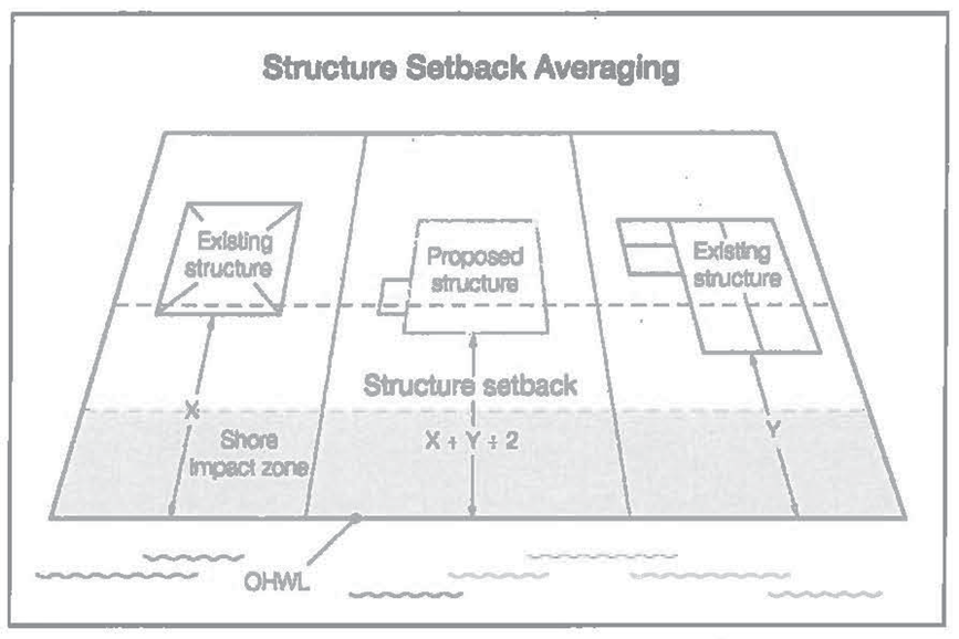Setback or setback line: The minimum horizontal distance between a structure, sewage treatment system, or other facility and an ordinary high-water level, sewage treatment system, top of a bluff, roadway, roadway right-of-way or easement, property line, or other facility as defined by the regulations of this division or the zoning ordinance.