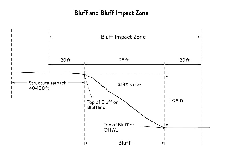 Bluff impact zone: A bluff and land located within 20 feet of the top of a bluff.