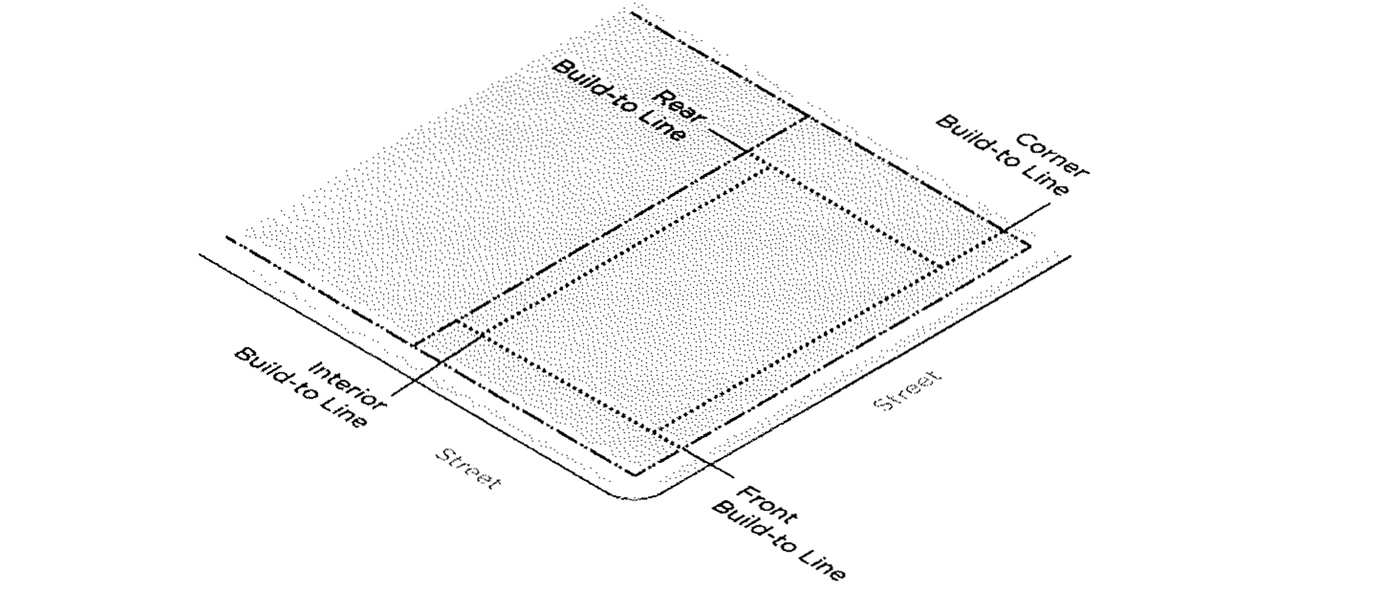 Build-To Line (BTL). A setback line where a certain percentage of building frontage must be located, measured from the applicable lot line. A build-to line of zero means a certain percentage of building frontage must be located at the lot line.