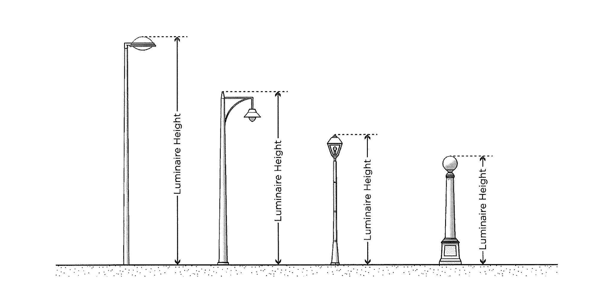 Luminaire Height. The height of a luminaire is measured as the vertical distance from the ground directly below the centerline of the luminaire to the top of the pole or luminaire, whichever the case may be.