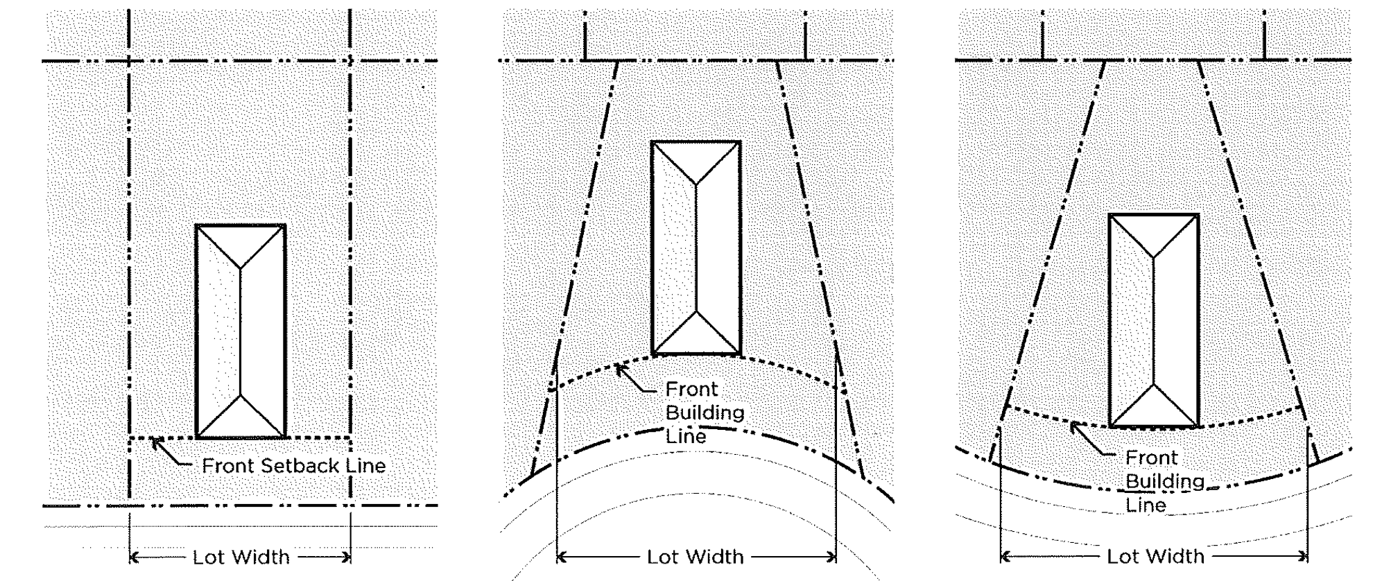 Lot Width. Lot width is the horizontal distance between the side lot lines measured at right angles to its depth along a straight line parallel to the front lot line at the minimum front setback line. For irregular lots, such as cul-de-sac lots or pie-shaped lots, lot width is measured at the front building line of the structure between side lot lines.