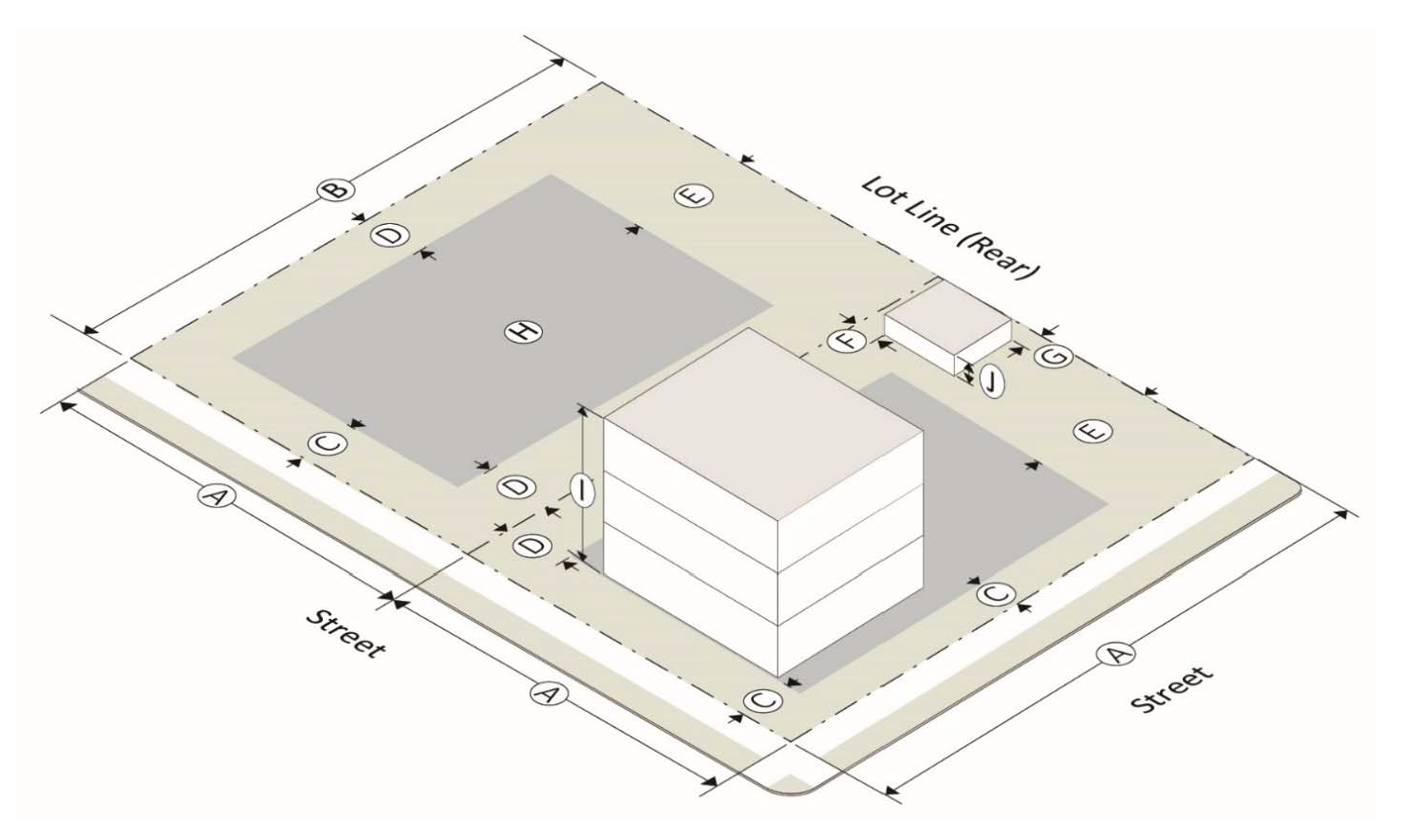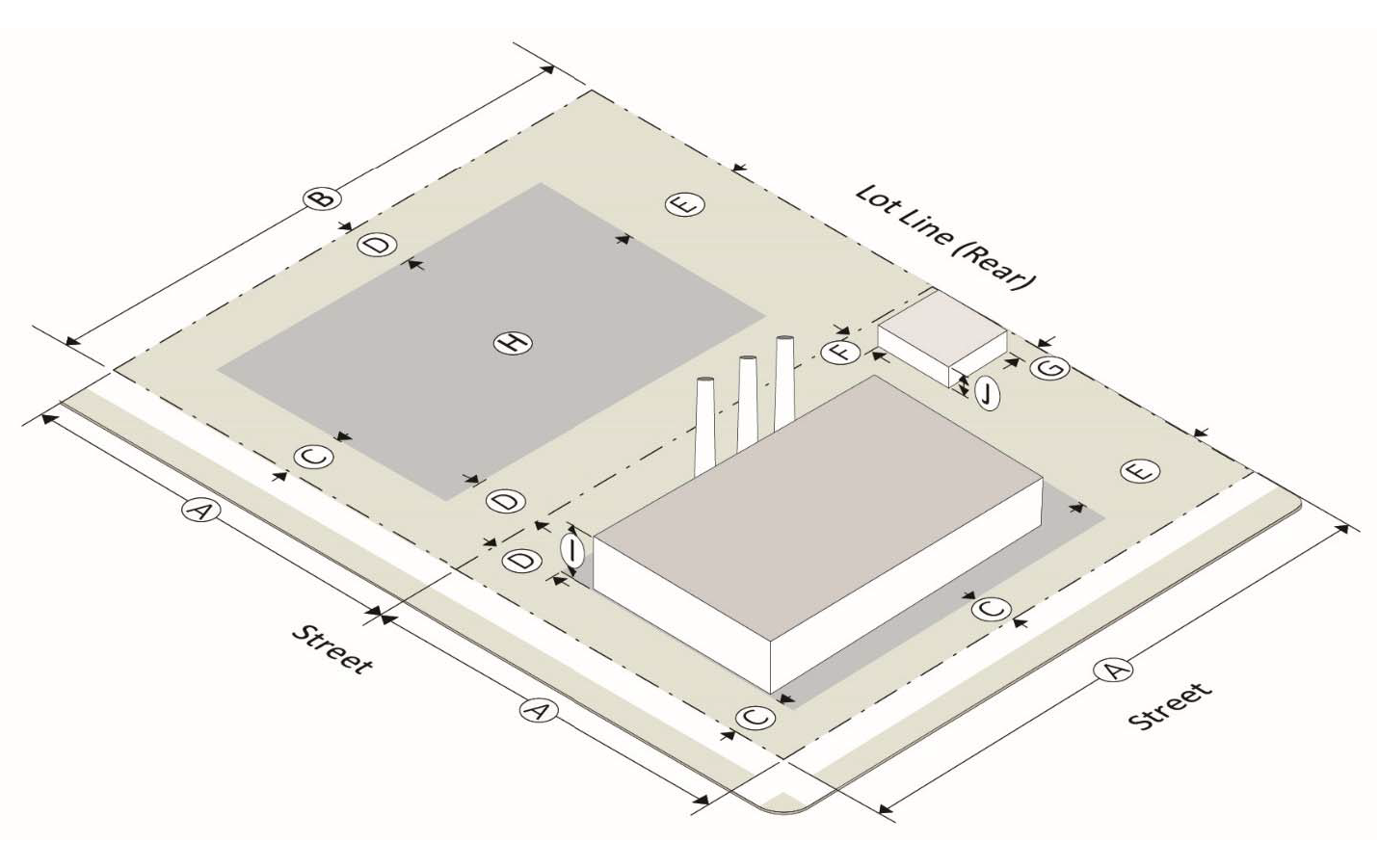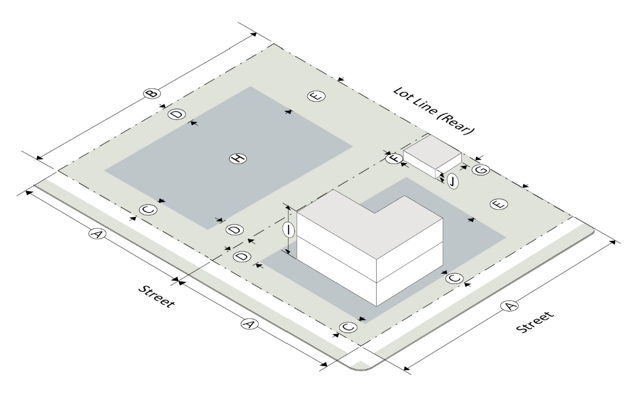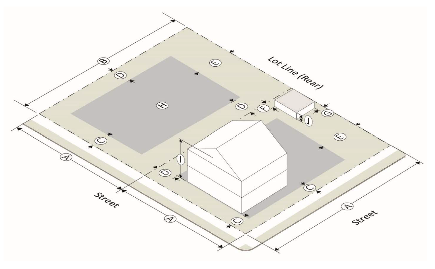 The following table and graphics depict the interpretation of lot development standards for residential districts. The official definitions for these terms can be found in chapter 100, article II, definitions.