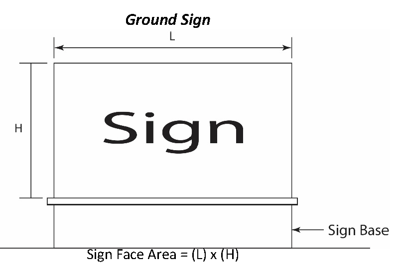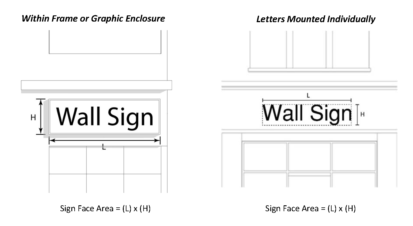 In the case of individually mounted letters, where there is not a defined sign background, the area of the sign shall be the area that is measured by taking the largest horizontal width multiplied by the largest vertical height of the sign as identified in the graphics below.