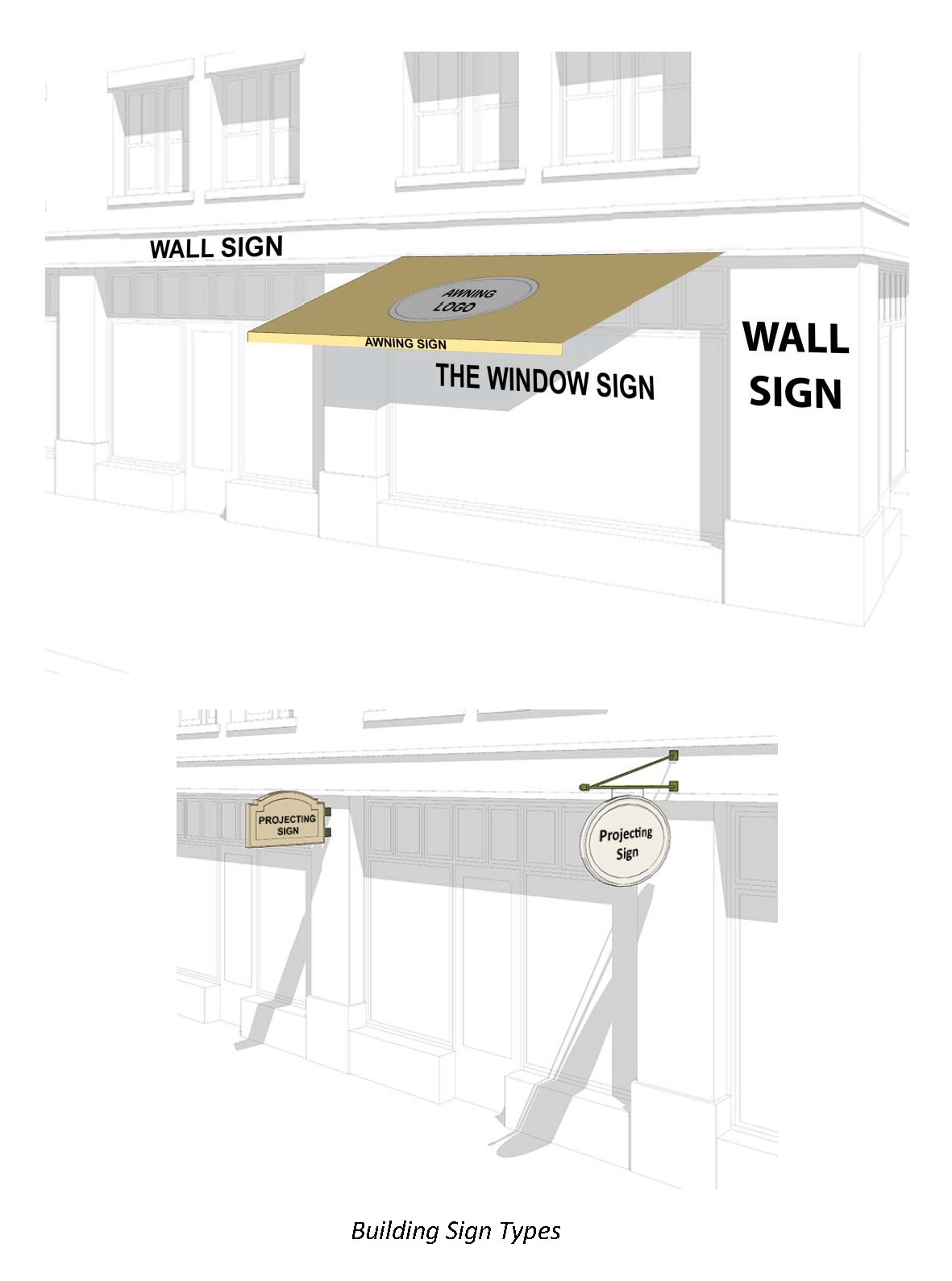 Building signs. Signs attached to a building, including the following:
