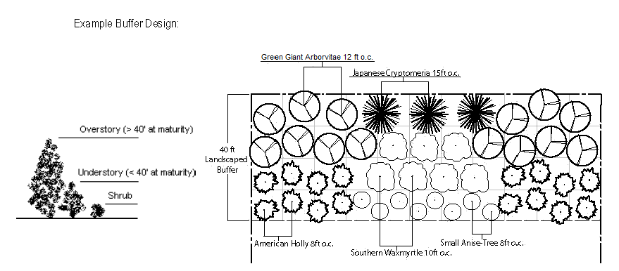 Trees and shrubs to be planted shall be selected from the table of pre-approved buffer species.