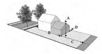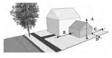 | Front Setback (B): | 5' | 25' | 5' | 20' | ||