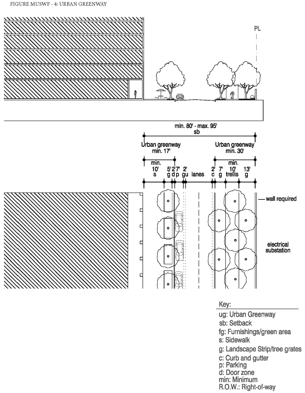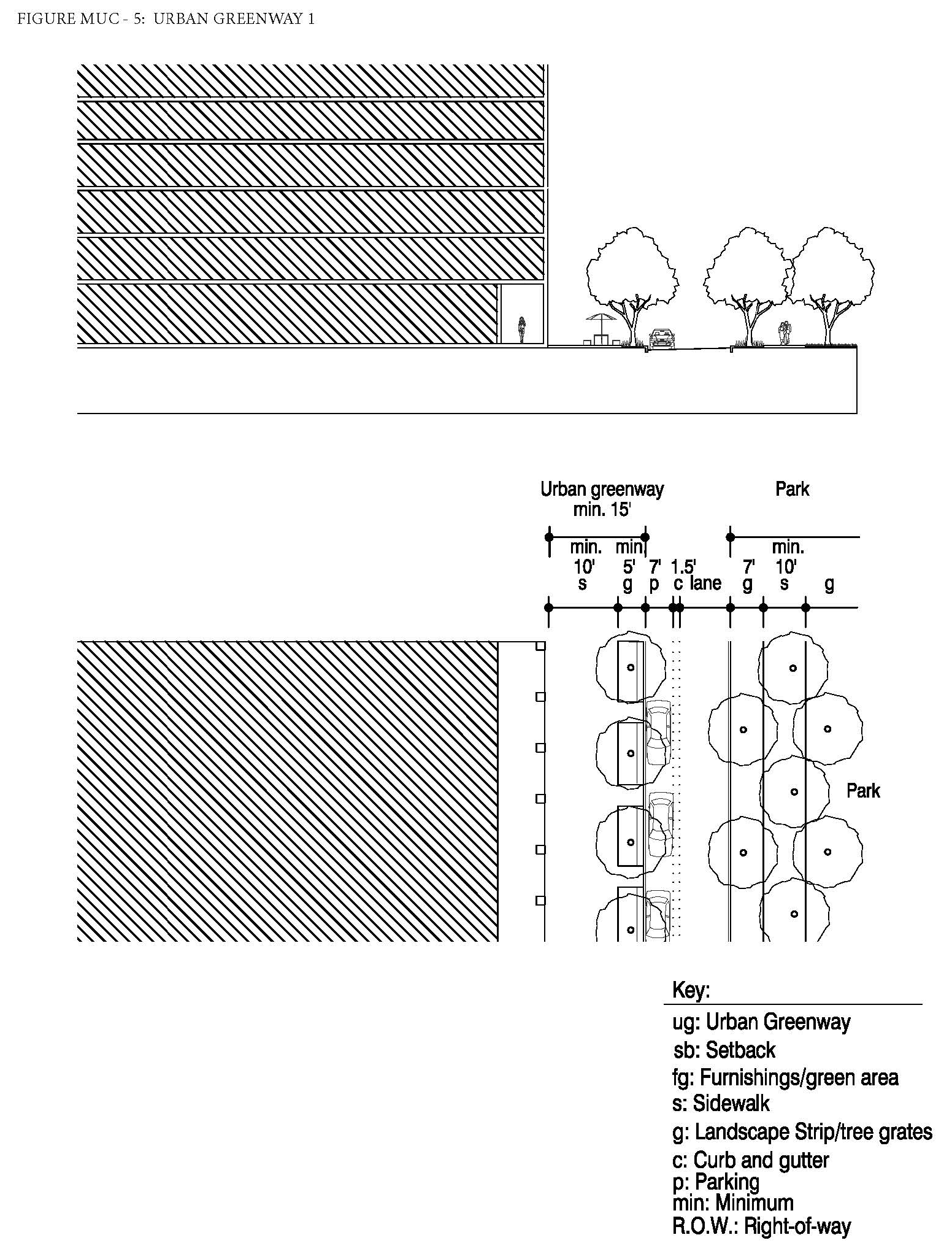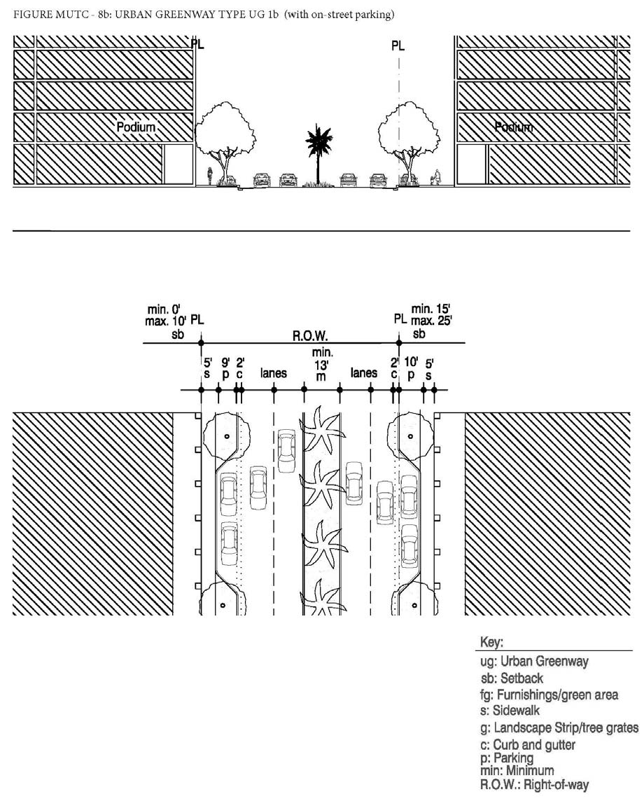 Type UG-1 shall run parallel to the corridor along the north side of NE 167th Street and be composed as described below and in Figure MU/IB-5.