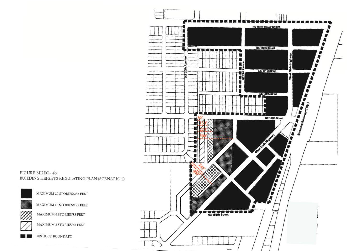 Building Heights Plan. Establishes the maximum building height with and without bonus' as shown in Figure MU/IB- 7.
