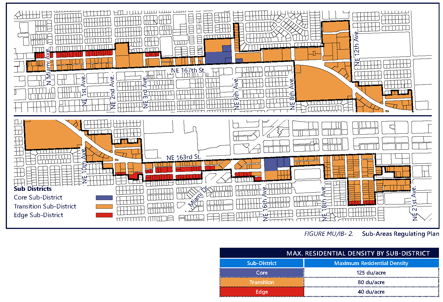 All new development shall comply with the standards illustrated within Figure MU/IB-7. A summary of the heights permitted in the MU/IB is provided in Table MU/IB-2. This table is only a summary of maximum heights in the district. Further breakdown of heights shall be prescrbed in Figure MU/IB-7.
