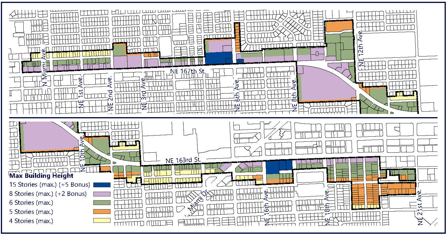 Building frontage along NE 167th/163rd Street shall be developed as non-residential at the ground level.