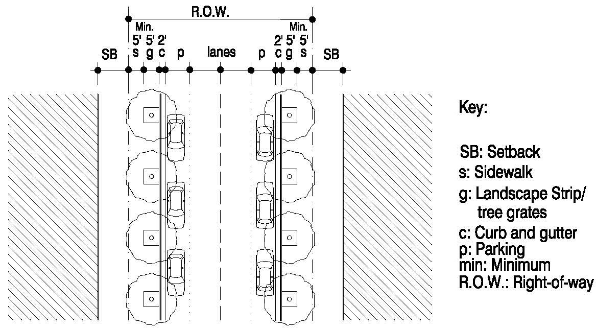 Secondary Streets, where located in a core/transition sub-area, street section shall include on-street parking, at a minimum.