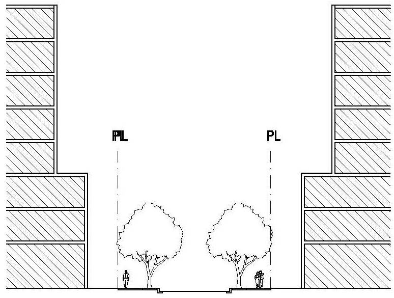 Street Trees shall provide a continuous canopy coverage over the pedestrian zone, for the length of the greenway's frontage.