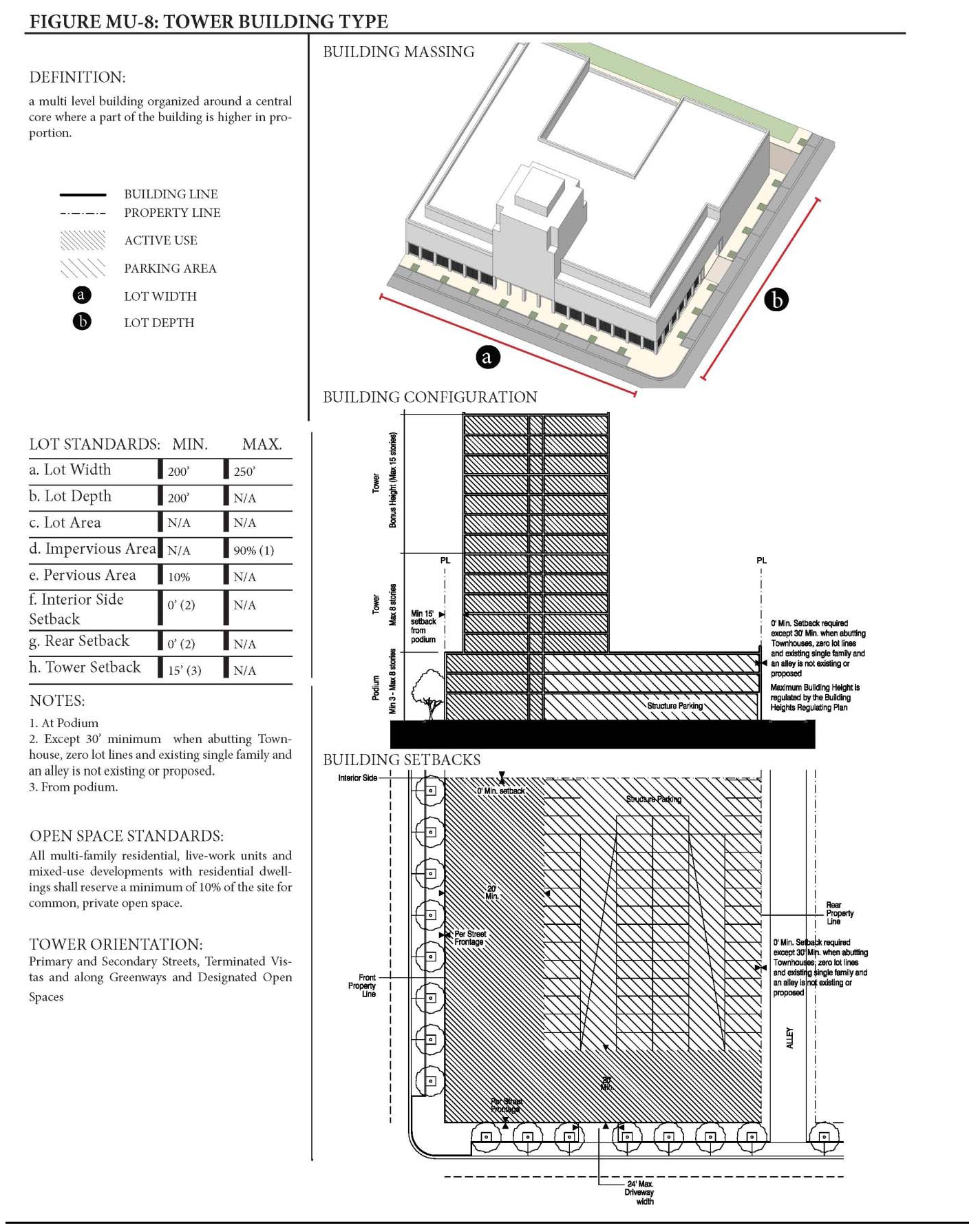 (1) Buildings higher than eight (8) stories shall only be developed per the Tower Building type standards.