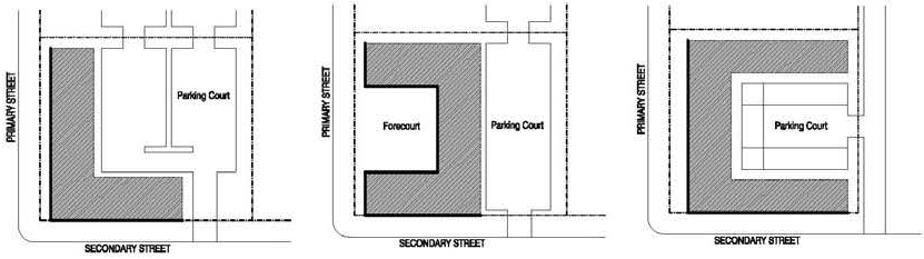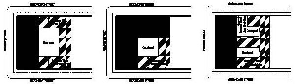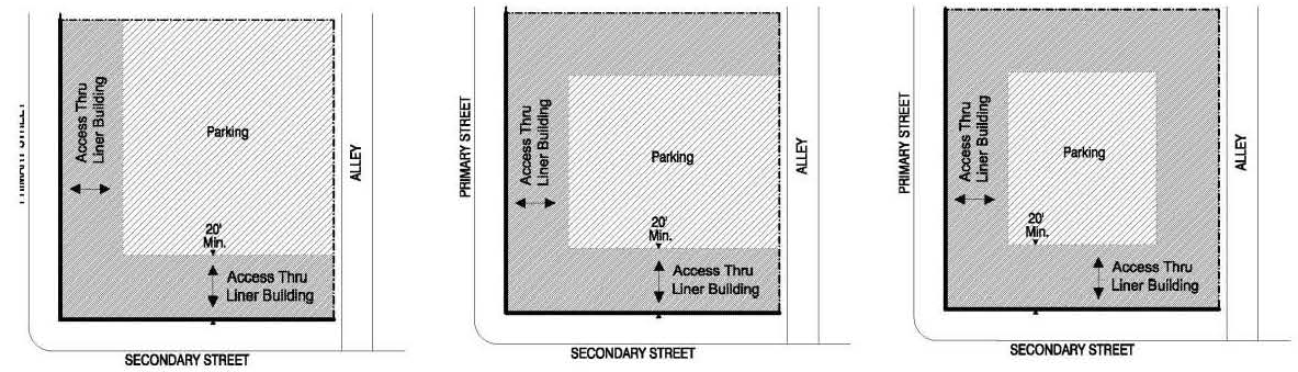 Where no alley is present, vehicular access shall occur from the secondary street frontage. Figure MU/IB-10.