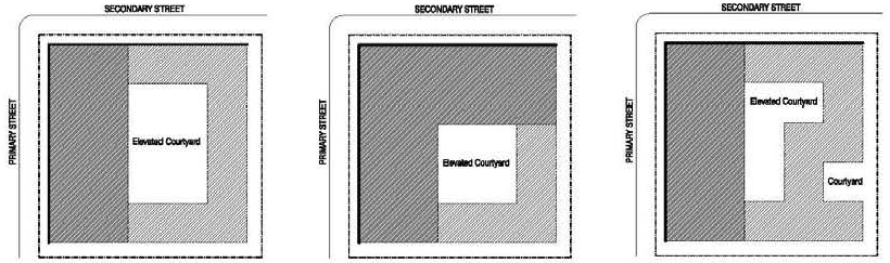 For all mixed-use/multi-family development, the main access to the units on floors two (2)+ shall occur from a ground level lobby/courtyard accessed from the parcel's primary frontage.