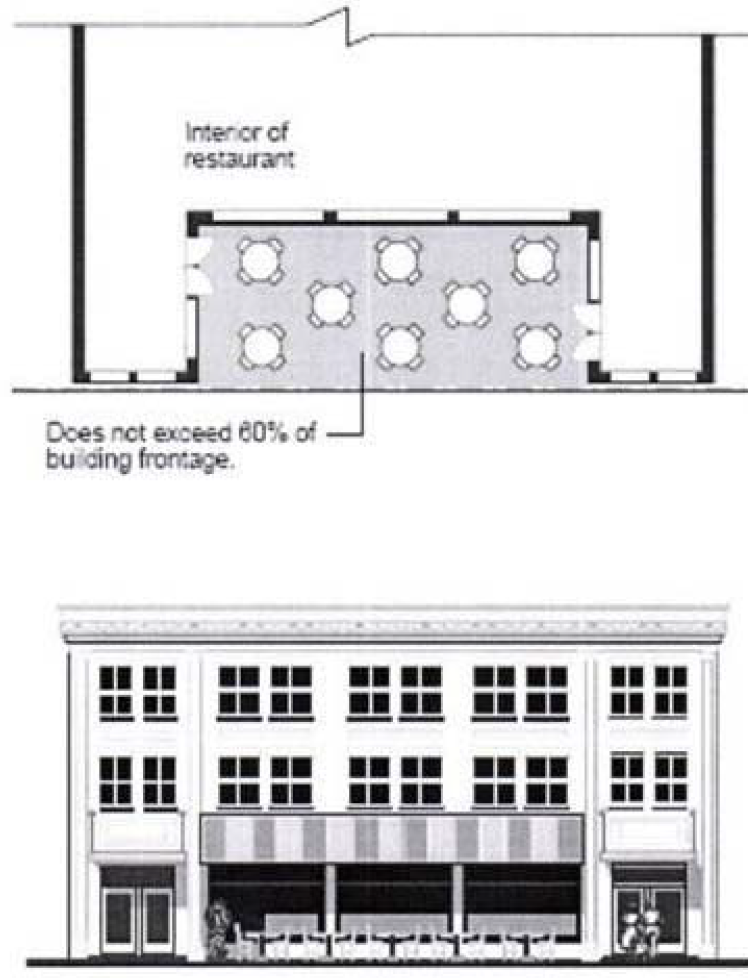 or less, and frontages on two (2) or more streets, the minimum Building Frontage percent