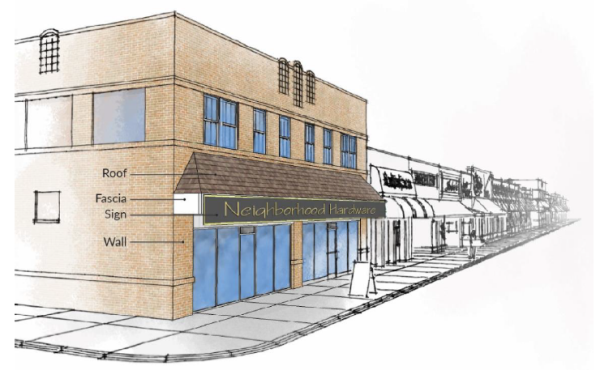 SIGN: Any device providing identification, advertising or directional information for a business, service, product, person, organization, place or building. Included in this definition of signs are graphic devices such as logos and attention attracting items such as banners or logo sculptures, and trademarked color band fascia.