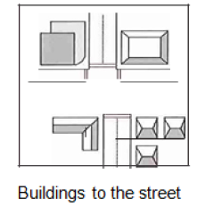| Minimum Building Height | Two stories or 24’ | Two stories or 24’ | One story or 14’ | One story or 14’ |