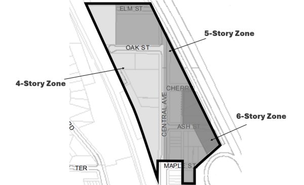 | Building height2 | 4 Story Zone - Maximum of 55 feet or 4 stories, whichever is lower 5 Story Zone – Maximum of 65 feet or 5 stories, whichever is lower 6 Story Zone - Maximum of 75 feet or 6 stories, whichever is lower | |||