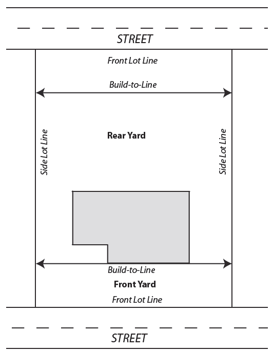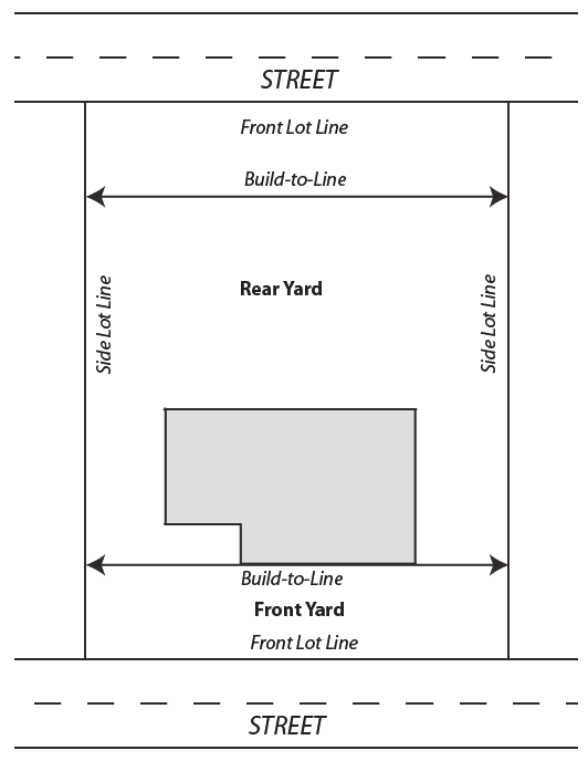 Where a build-to-line is established, the front façade of the principal building shall be constructed along that build-to-line for the minimum percentage required (See Figure 3-1).