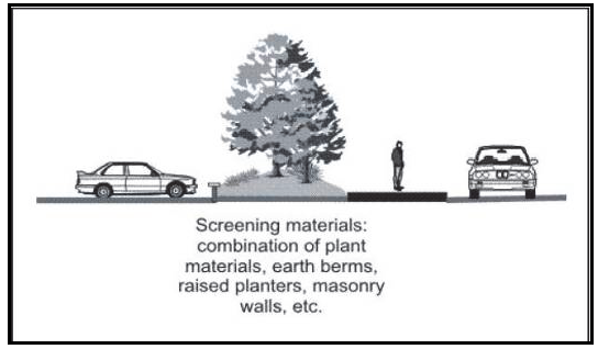 Design techniques (e.g., use of lampposts and/or extra landscaped areas at the front of compact spaces) will be incorporated into the parking lot plan to preclude the parking of standard size vehicles in compact vehicle spaces, subject to the approval of the city planner.