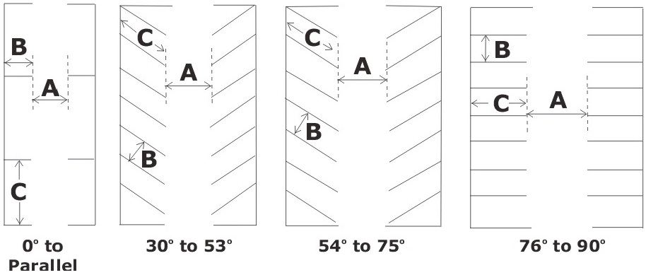 Parking spaces will be clearly outlined with four-inch wide lines painted on the parking surface.