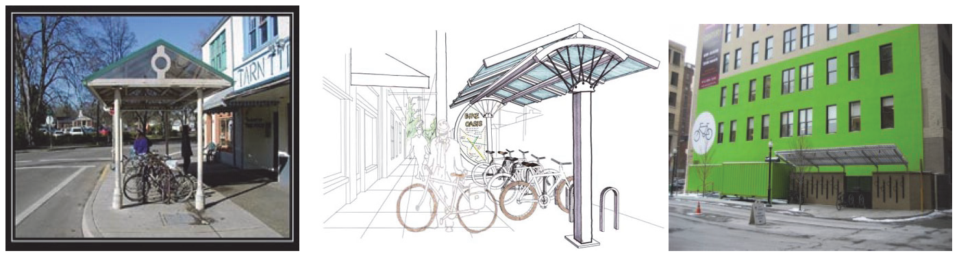 At each point that the on-site pedestrian walkway system crosses a parking lot or internal street or driveway, the walkway or crosswalk will be clearly marked through the use of a change in paving materials, distinguished by their color, texture or height. (See Figure 3-30.)