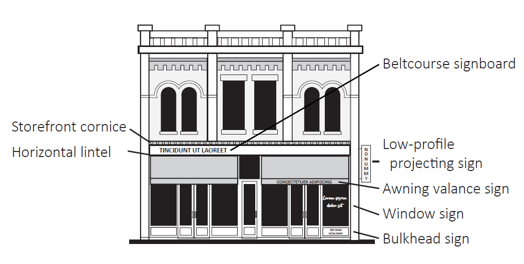 Figure 6-3: Illustration of where signs are historically attached to buildings in