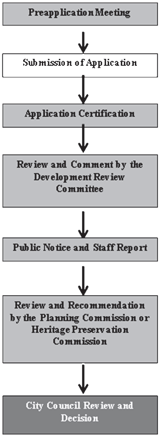 Effect of Preapplication Meetings and Preliminary Review. Discussions that occur during a preapplication meeting or preliminary review with the planning commission or heritage preservation commission are not binding on the city and do not constitute official assurances or representations by the city or its officials regarding any aspects of the plan or application discussed (See Section 8.4.6(C), Review by the Development Review Committee).