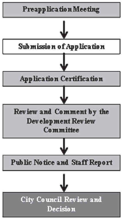 Applications required under this LDC shall be submitted using the application form established by the city. The materials and quantities to be submitted with each application are listed on each application form.