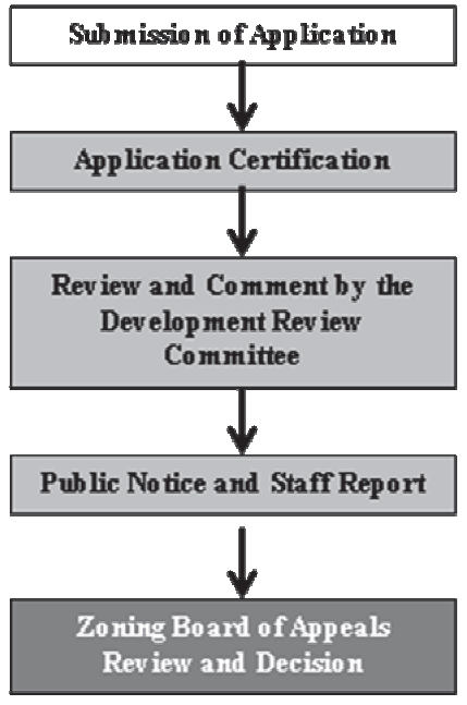 Variance applications shall be submitted to the city planner in accordance with Section 8.3, Common Development Review Requirements, and shall be subject to the Type 6 review procedure as established in Section 8.4.9, Type 6 Review Procedure (Quasi-Judicial Decision by the Zoning Board of Appeals).